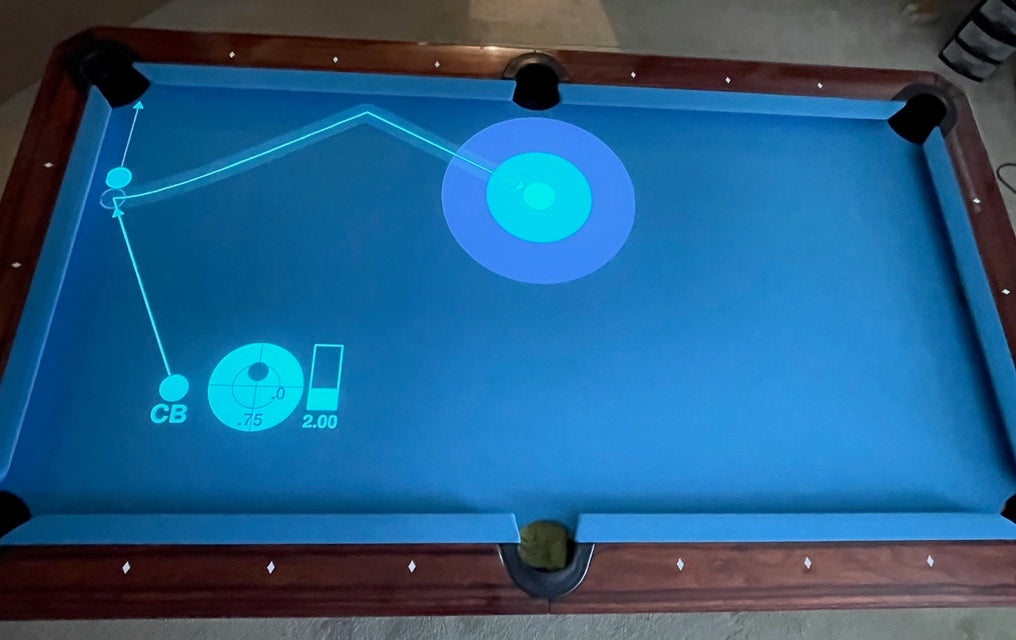 We've partnered with projection technology companies to display Bullseye Billiards shot diagrams directly on pool tables. Now you can see exactly where to position the cue ball and aim your shots with precise visual guides projected right onto the table.