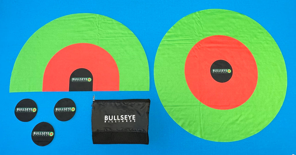 The Bullseye Billiards Target Set is the best instructional aid for practicing cue ball positioning. This is a standalone set of targets that can be placed on a billiard/pool/snooker table for practice. Works with any size pool, billiard, or snooker table, from 6-foot to 12-foot.