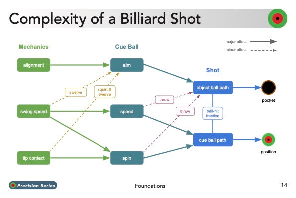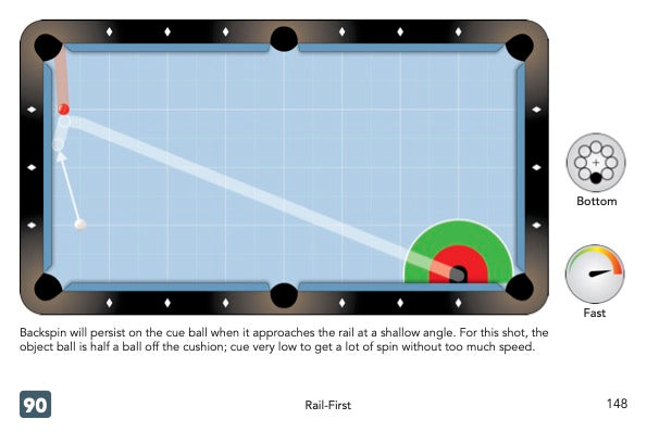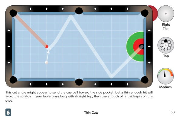 • Seven essential shot categories: Thin Cuts, Near the Object Ball, From the Pocket, High Spin, Stun Run-Through, Cheating the Pocket, and Rail-First